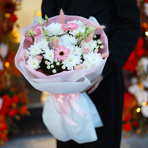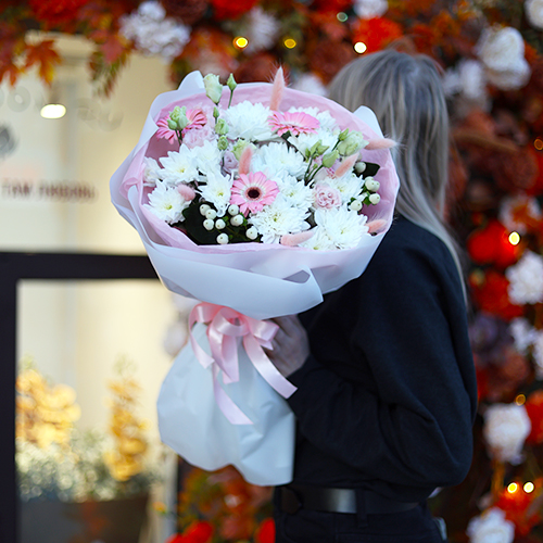 Букет "Интонации" из гербер, эустом и хризантем