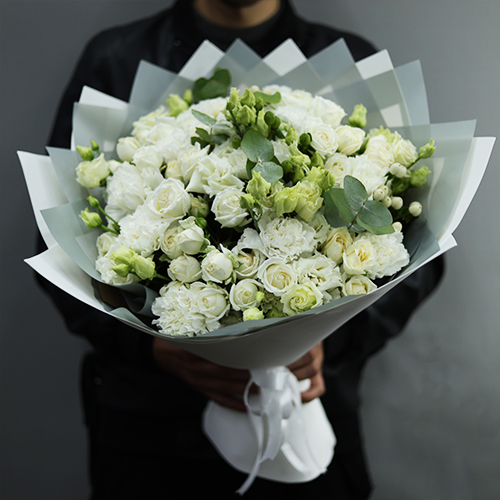 Заказанный букет вы можете забрать у нас в магазине по адресу: Москва: ул. Большая Семеновская 11с3 - с 7:00 до 24:00!