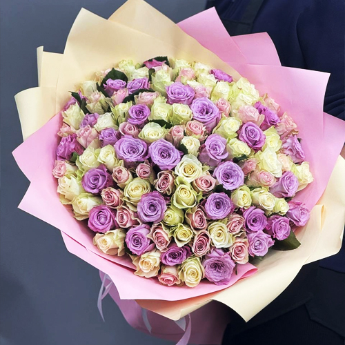 Букет из 101 розы пастельный микс и роз Меритим (40 см)